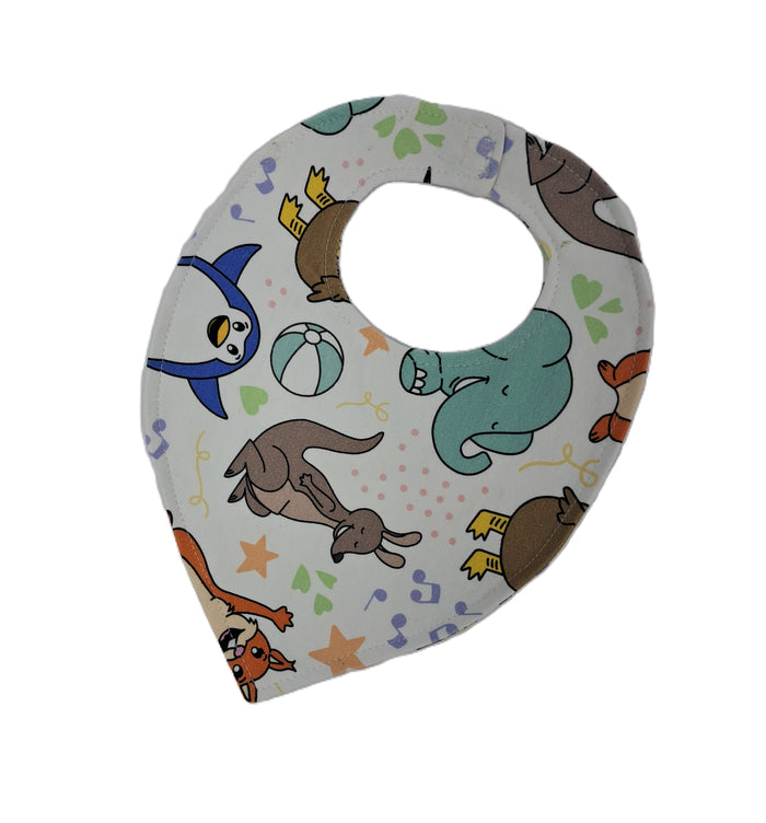 Newborn bib – soft cotton stretch knit one side; cotton poplin on the underside in the same pattern; soft Velcro fix. A special gift!