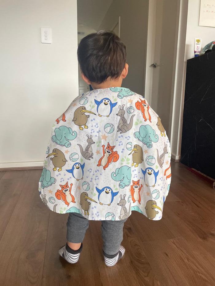 Superhero cape – suits 18-month to 3-year-old child; made from cotton poplin with soft Velcro fix. Have fun running around as a mainly music superhero!